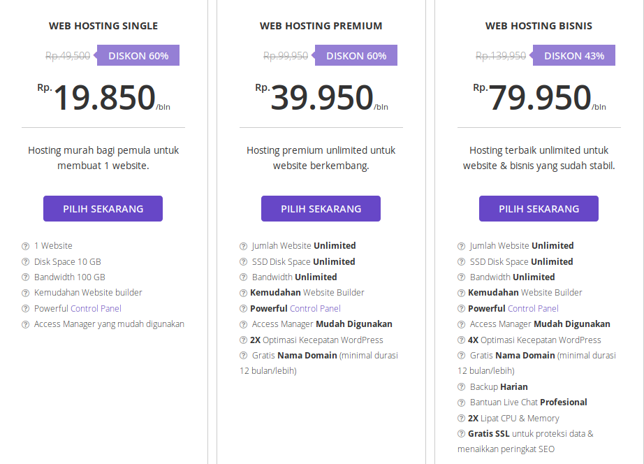 Nah, kembali lagi saya ingatkan bahwa tempat pembelian hosting dan domain yang palin terekomendasi di Indonesia adalah hostinger.co.id/web-hosting. Kamu bisa cek disana dan coba bandingkan dengan penyedia layanan hosting lainnya di Indonesia. Ingat, bandingkan juga dengan spesifikasi dan fitur tambahan yang akan kamu dapatkan.