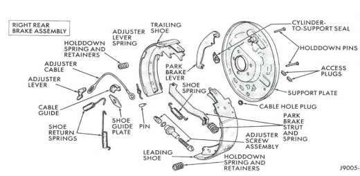 Rem tromol terdiri dari beberapa komponen seperti backing plate, silinder roda, sepatu rem dan kanvas serta tromol rem. Dan berikut ini gambar tentang kontruksi dari rem tromol.