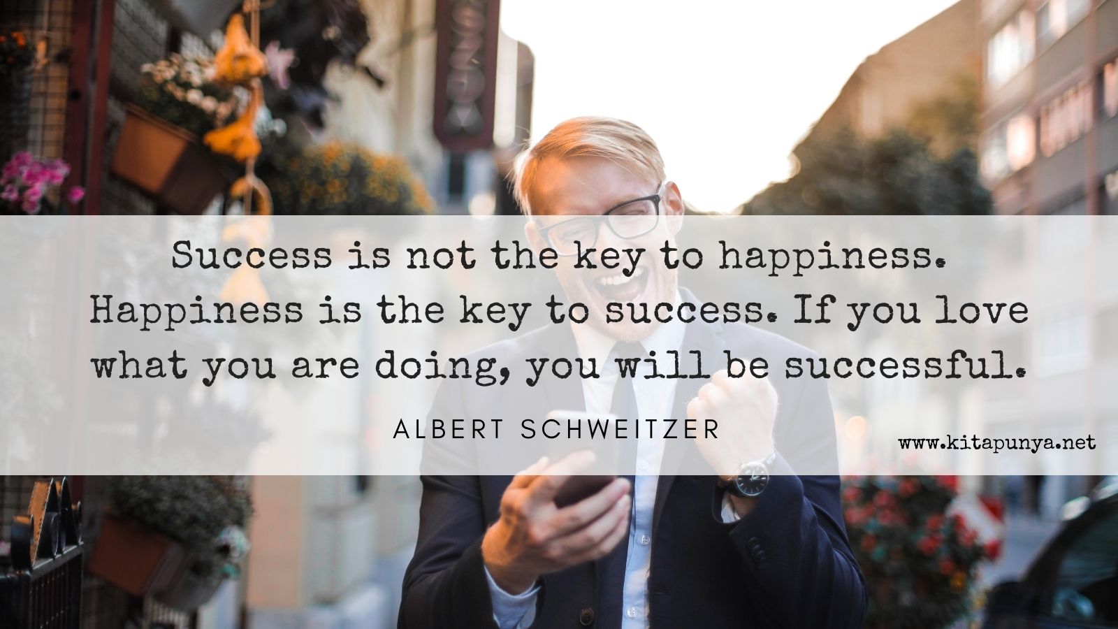 Artinya : Sukses bukan kunci dari kebahagiaan. Kebahagiaan adalah kunci dari kesuksesan. Jika Anda mencintai apa yang Anda lakukan, Anda akan sukses.